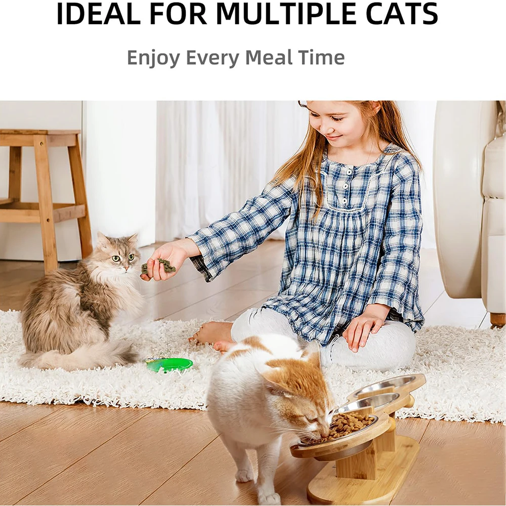 Our cat bowls are made of natural odor-free wood, waterproof and durable. And are also suitable for small dogs, meeting the needs of multi-pet families